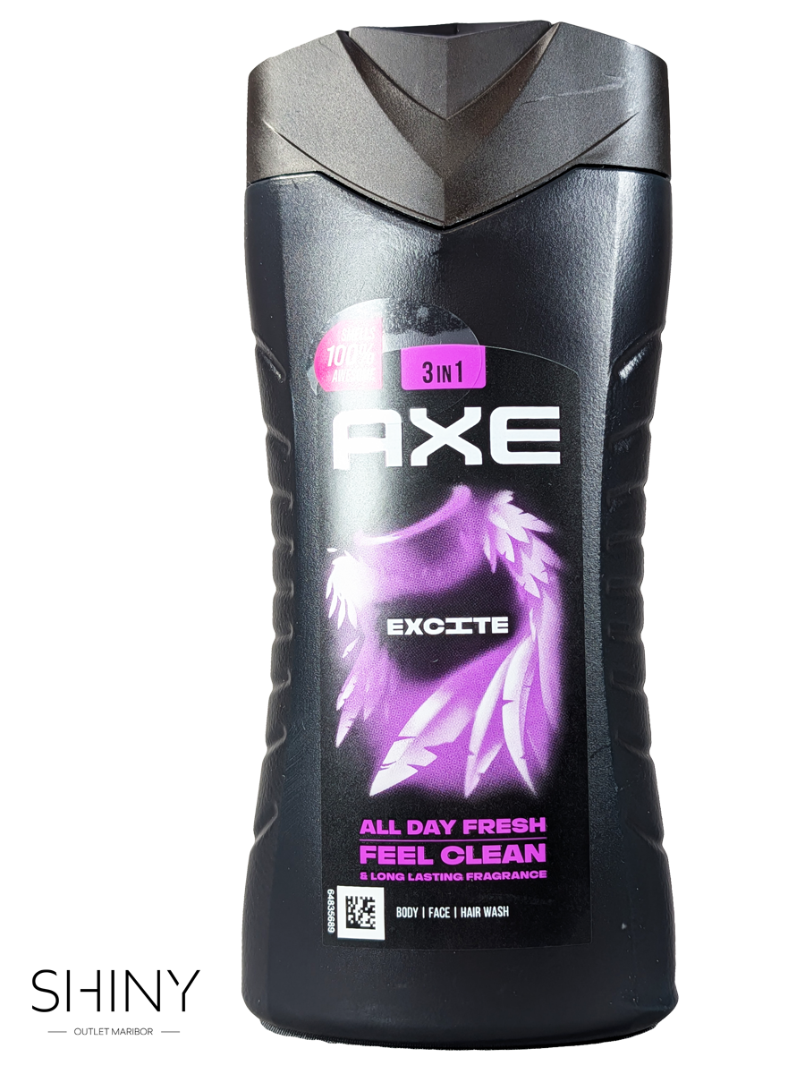 AXE gel za tuširanje očisti kožo in jo osveži ter zagotavlja dolgotrajno svežino. Namenjen je vsakodnevni uporabi za telo, obraz in lasišče.