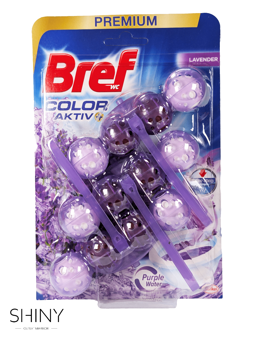 Bref Color Aktiv Lavender s formulo 4v1 učinkovito čisti, odišavi, preprečuje nastanek vodnega kamna in ohranja školjko sijoče čisto. Vsaka obešanka sprošča prijetno sivkino svežino, ki napolni kopalnico z občutkom miru in čistosti. Za dolgotrajno higieno in svež vonj po vsakem splakovanju. Pakiranje vsebuje 3 obešanke.