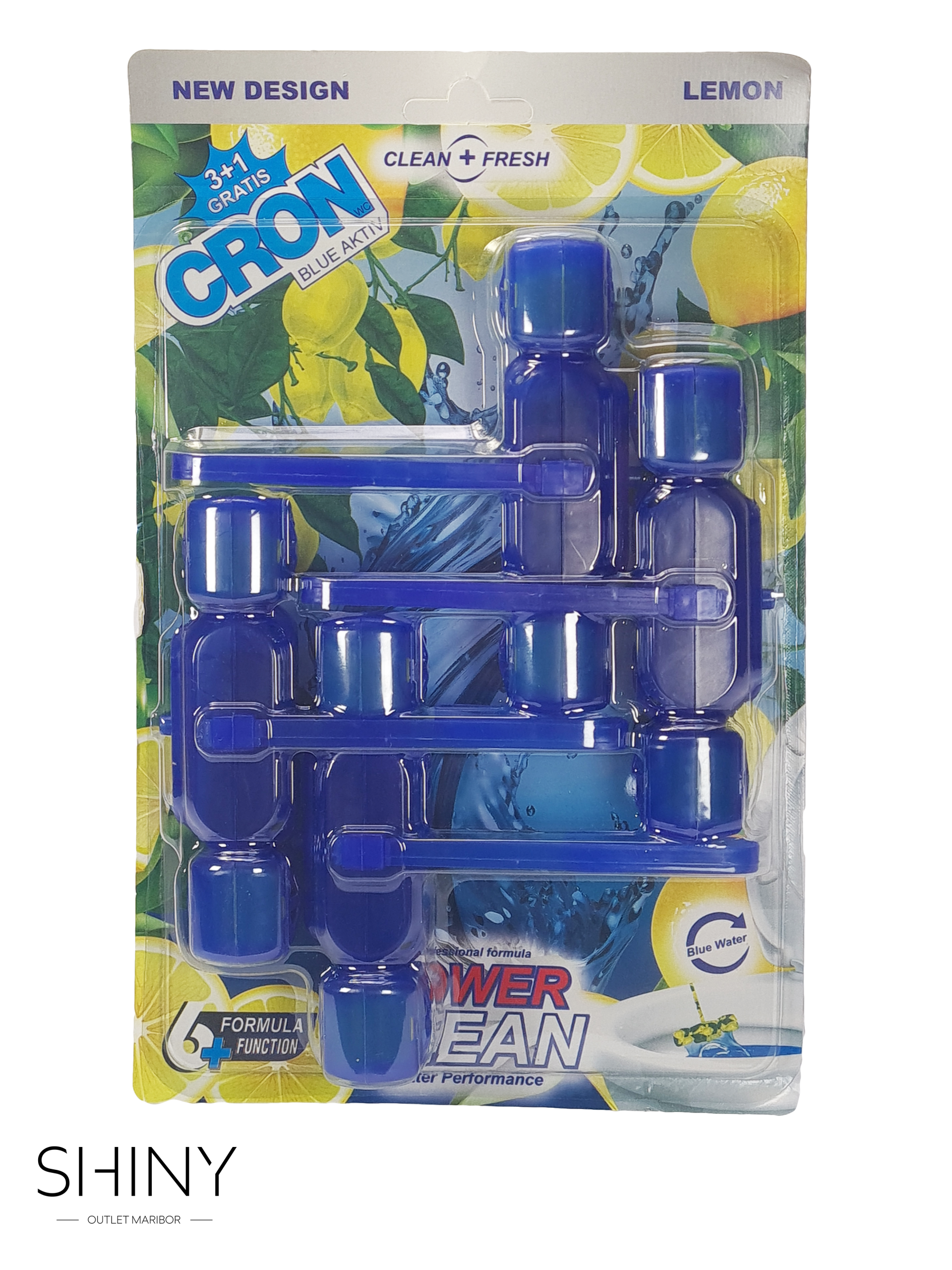 Cron WC obešanka Lemon z limonino svežino poskrbi za sijočo čistočo in prijeten citrusni vonj. Formula 4v1 učinkovito čisti, odišavi, preprečuje vodni kamen in ohranja WC školjko bleščečo. Pakiranje vsebuje 4 obešanke za dolgotrajno uporabo in svežino.