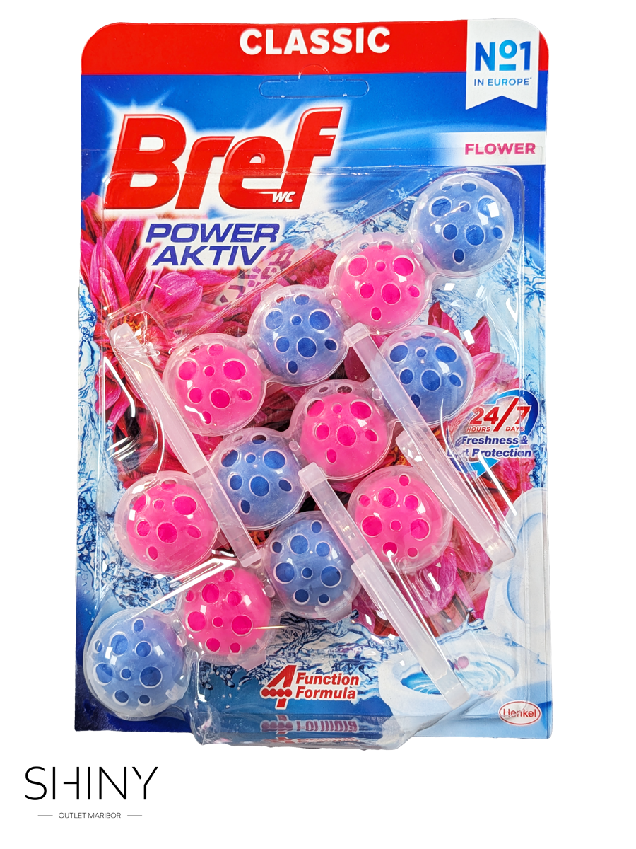 Bref WC obešanka Power Aktiv – Flower združuje moč čiščenja in sproščujočo sivkino aromo. Formula 4v1 skrbi za čistočo, odišavljenje, zaščito pred vodnim kamnom in sijoč lesk školjke. Uživajte v občutku svežine in čistoče, ki traja dlje časa. Pakiranje vsebuje 3 obešanke.