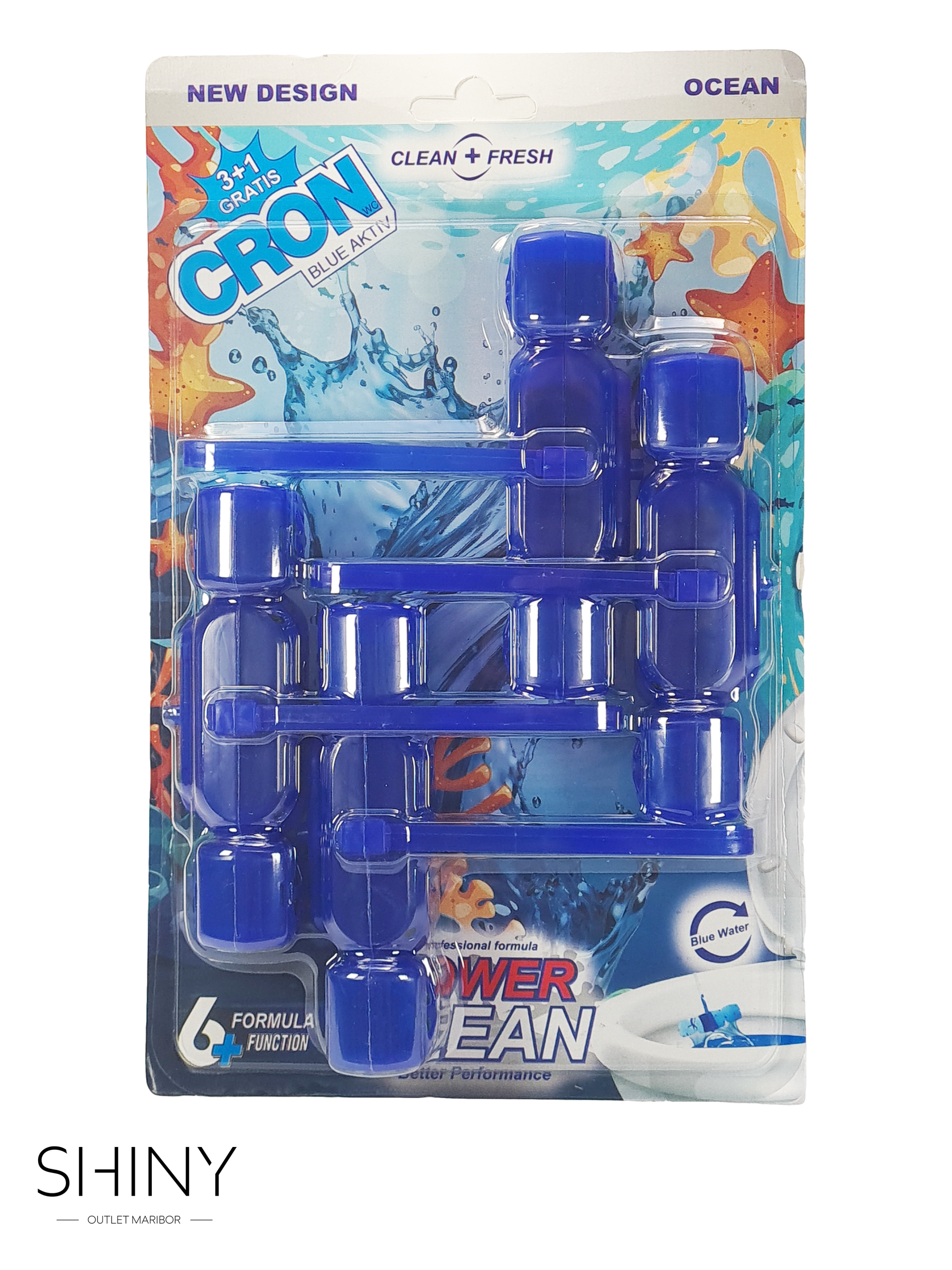 Cron WC obešanka Ocean prinaša osvežujoč morski vonj, ki napolni kopalnico s čistim občutkom svežine. Formula 4v1 čisti, odišavi, preprečuje vodni kamen in daje školjki bleščeč lesk. Pakiranje vsebuje 4 obešanke za dolgotrajno uporabo.