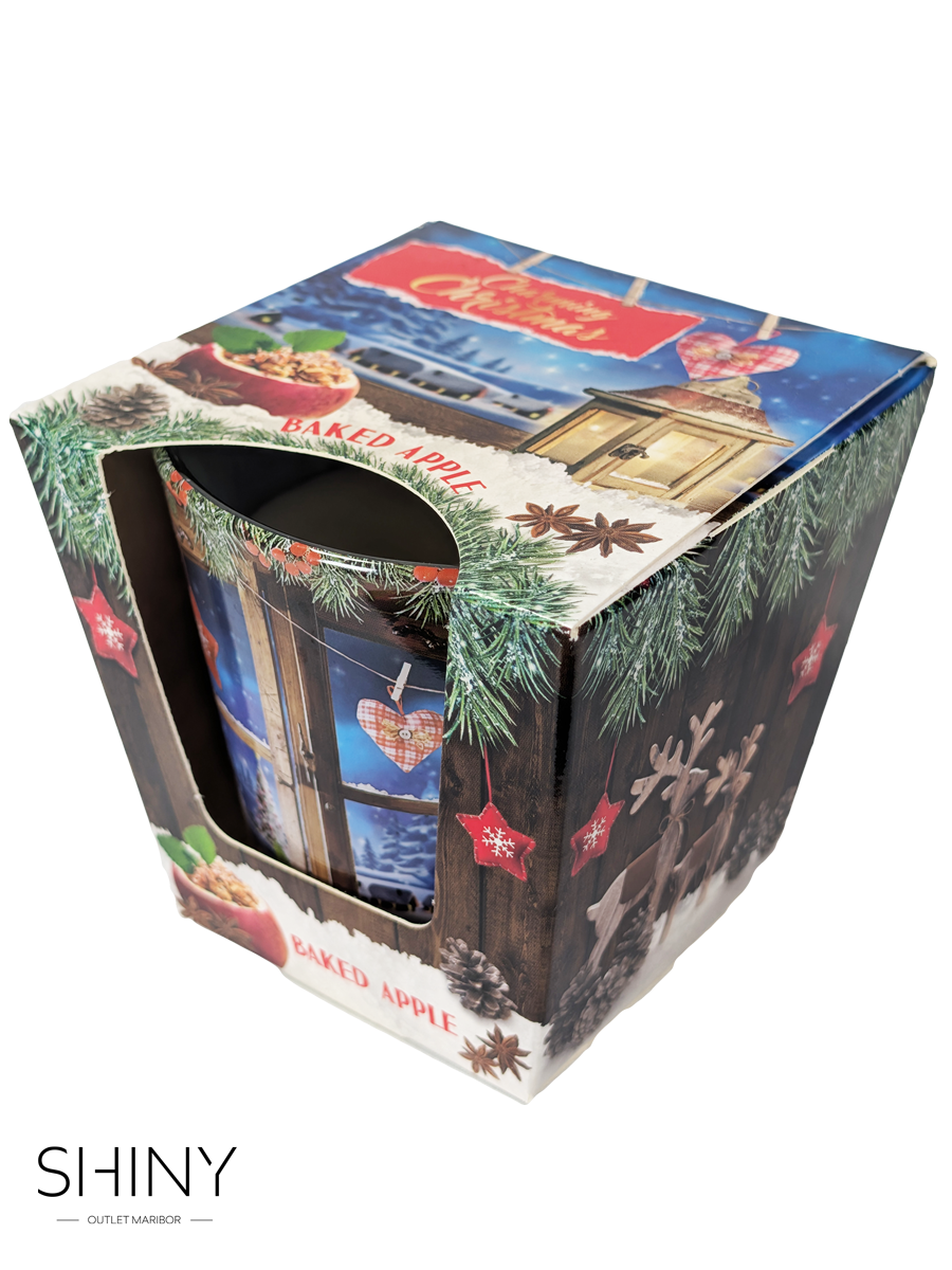 Dišeča sveča Baked Apple (115 g) – Božična dišeča sveča v steklenem kozarcu ustvari toplo, praznično in prijetno atmosfero doma. Vonj pečenih jabolk z rahlo sladkimi in toplotnimi notami. Sveča je v dekorativni embalaži, primerna tudi za darilo.