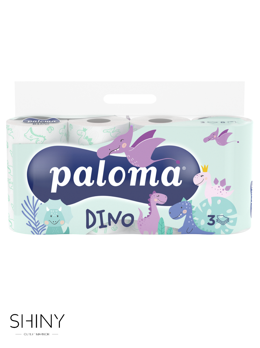 Paloma Dino je kakovosten 3-slojni toaletni papir, zasnovan za udobno in zanesljivo vsakodnevno uporabo. Izdelan je iz 100 % certificirane celuloze, ki zagotavlja mehkobo, dobro vpojnost in prijazen stik s kožo. Papir je s potiskom in dermatološko testiran, zato je primeren za vso družino.