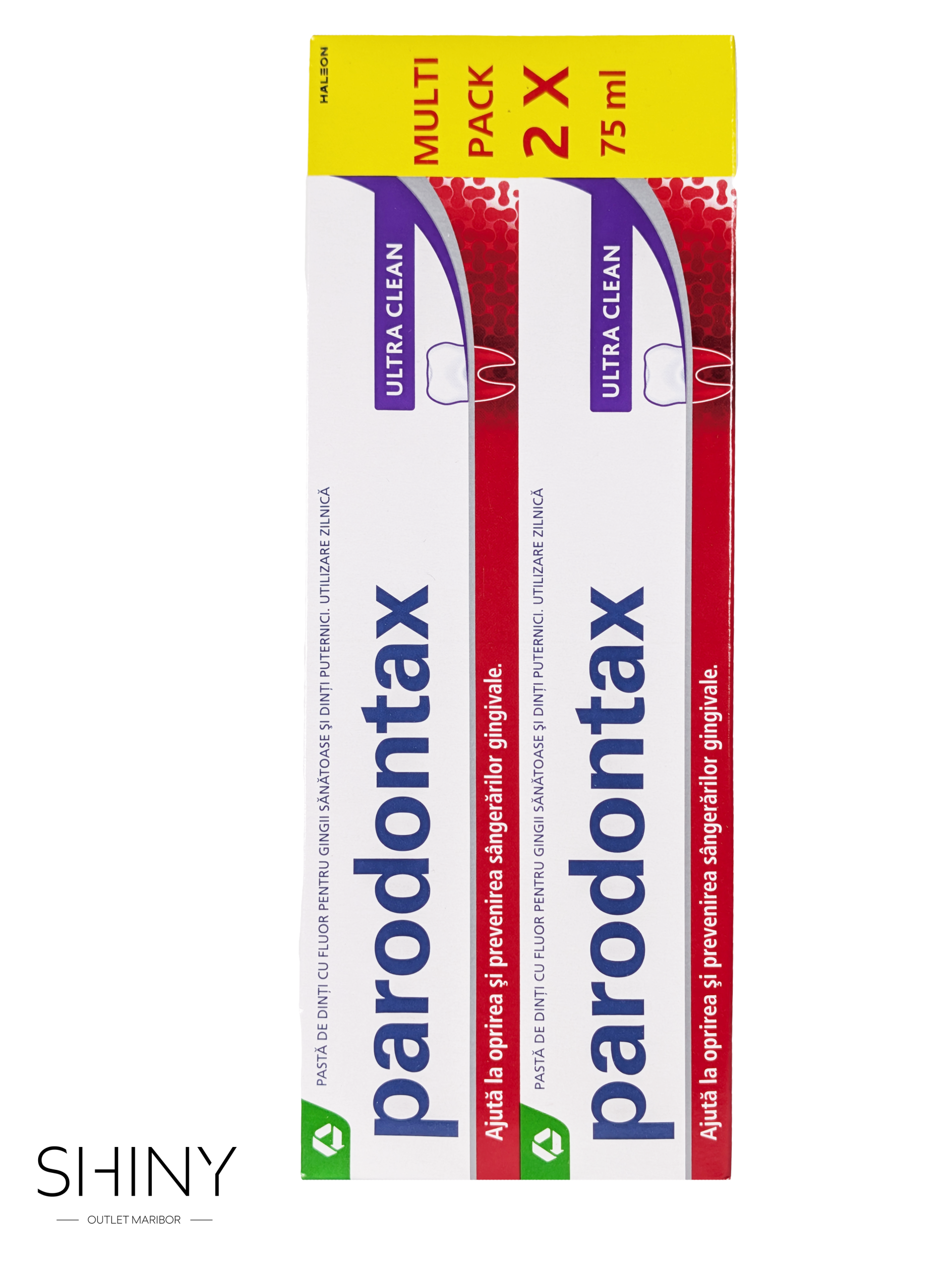 Parodontax Ultra Clean – Zobna pasta (2 x 75 ml) z mineralno soljo in zelišči učinkovito odstranjuje zobne obloge in pomaga preprečevati krvavenje dlesni. Redna uporaba pripomore k bolj zdravim dlesnim in močnejšim zobem.